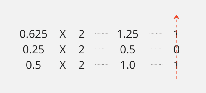 위의 52에 0.625를 더한 즉, 52.625 는 110100.101 (2) 로 표현할 수 있다.