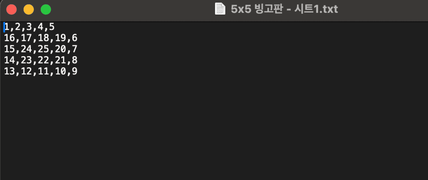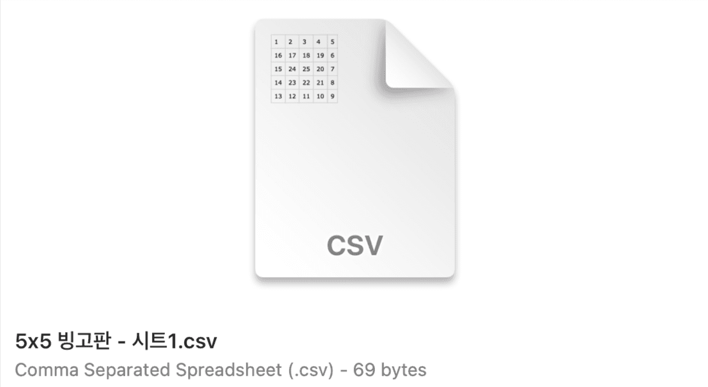 5x5 빙고판을 만들어보았어요.