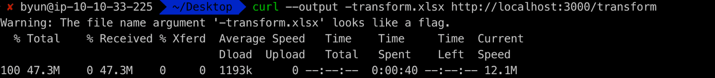 curl --output -transform.xlsx http://localhost:3000/transformquery time: 0.758ms