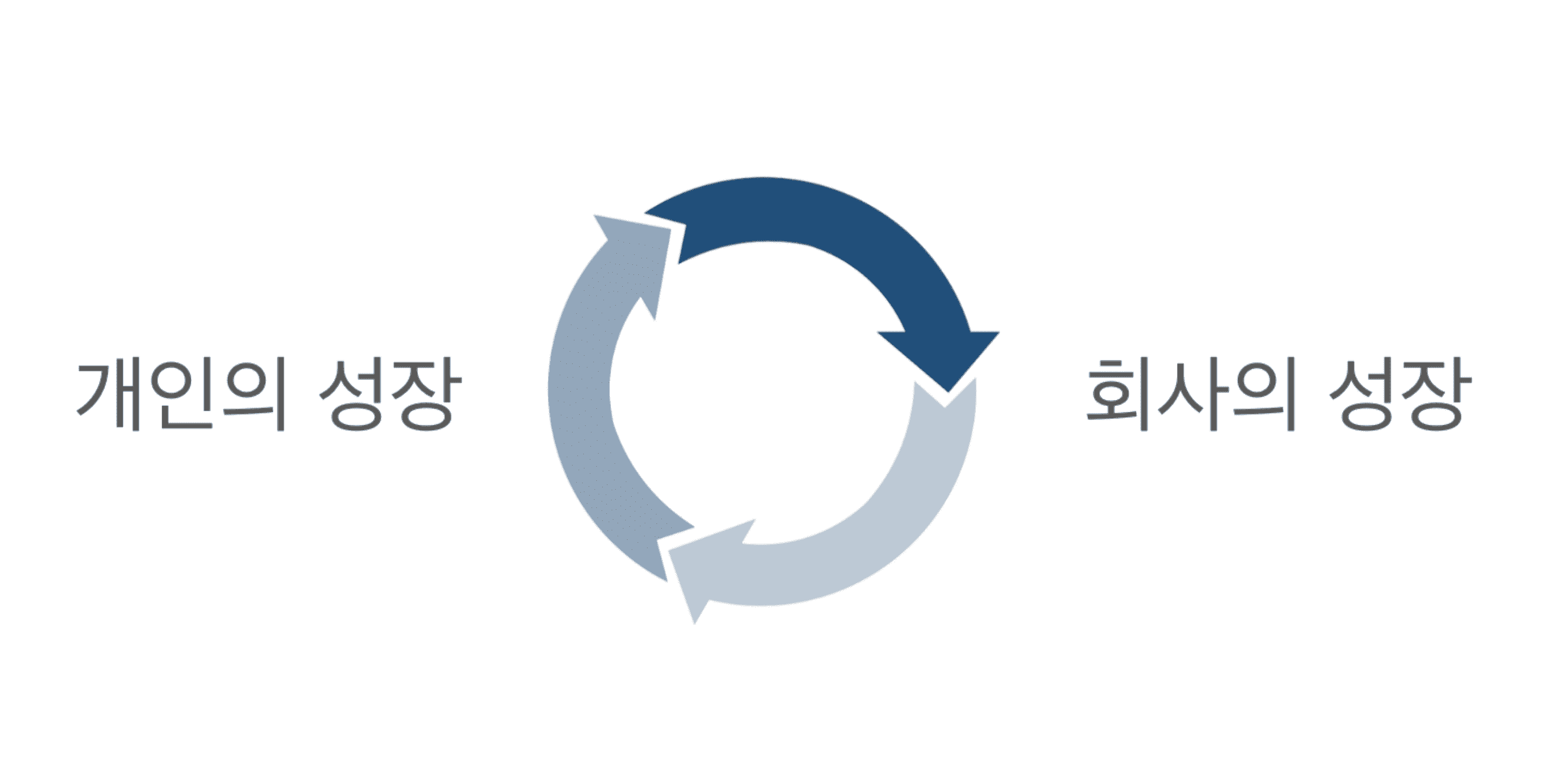 개인의 성장은 곧 회사의 성장과 연결된다. 개개인의 역량이 올라갈 때 회사는 더 좋은 제품을 만들 수 있고 회사가 성장하면 다시 개개인이 더 할 수 있는 영역이 넓어지면서 또다시 성장하는 선순환 구조를 이루게된다.