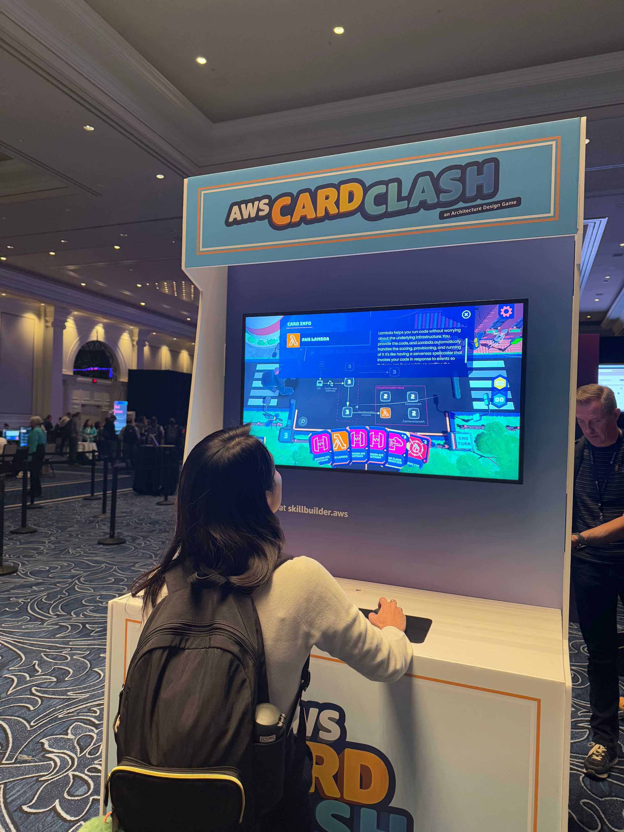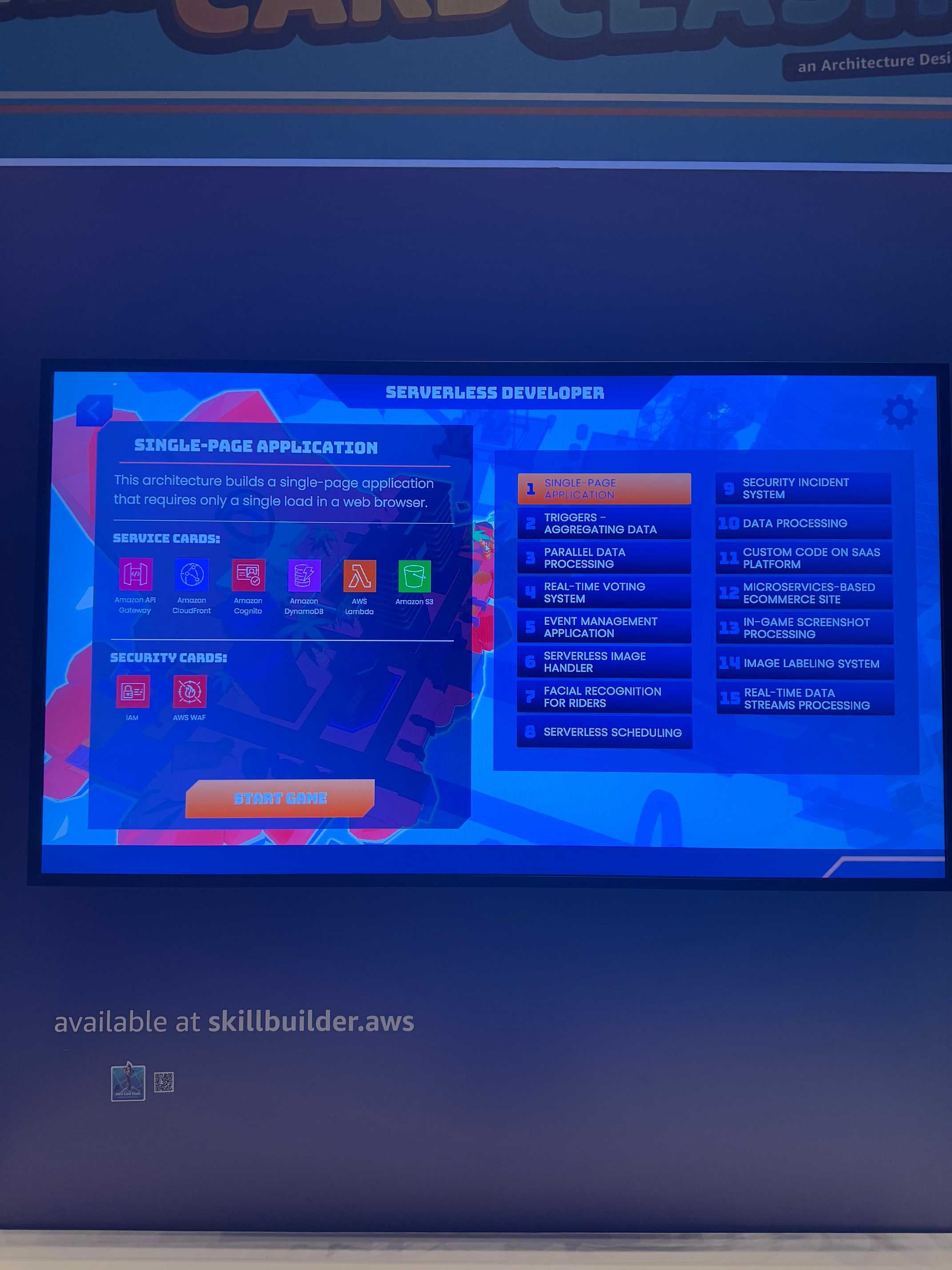 세션을 듣던 중 지나가다가 발견한 게임이었다. 빈칸에 알맞은 AWS 서비스를 끼워넣으면 되는 간단한(?) 게임인데 몇번 해보다가 어려워서 포기했다. 그냥 넣으면 되는게 아니고 상대방과 전투를 벌이며 포인트를 쌓으며 진행하는 게임방식이었다.
