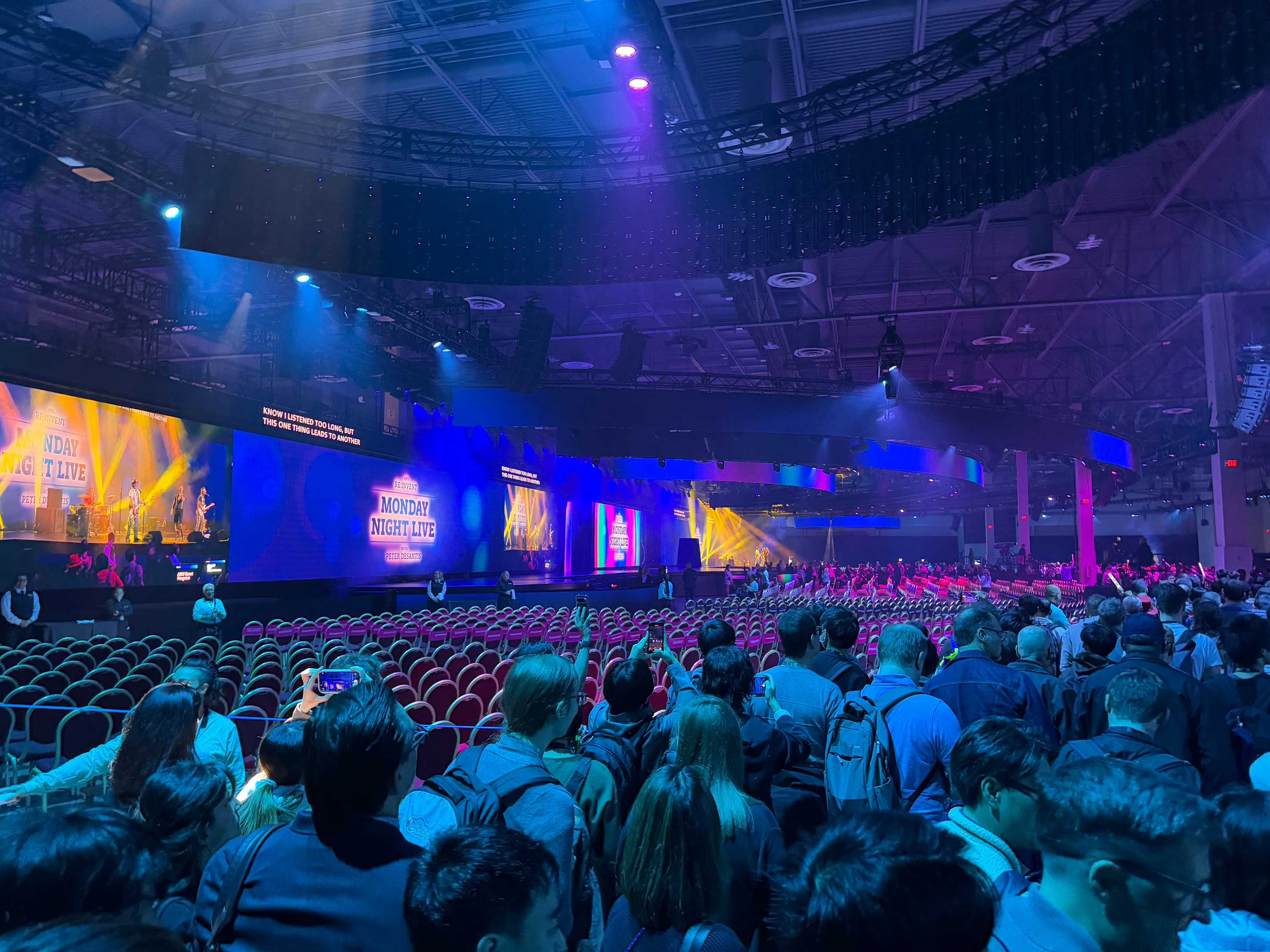 keynote 도 볼거리이지만, keynote가 시작되기 전 엄청난 크기의 홀에서 진행하는 무대공연도 엄청난 규모로 진행한다.