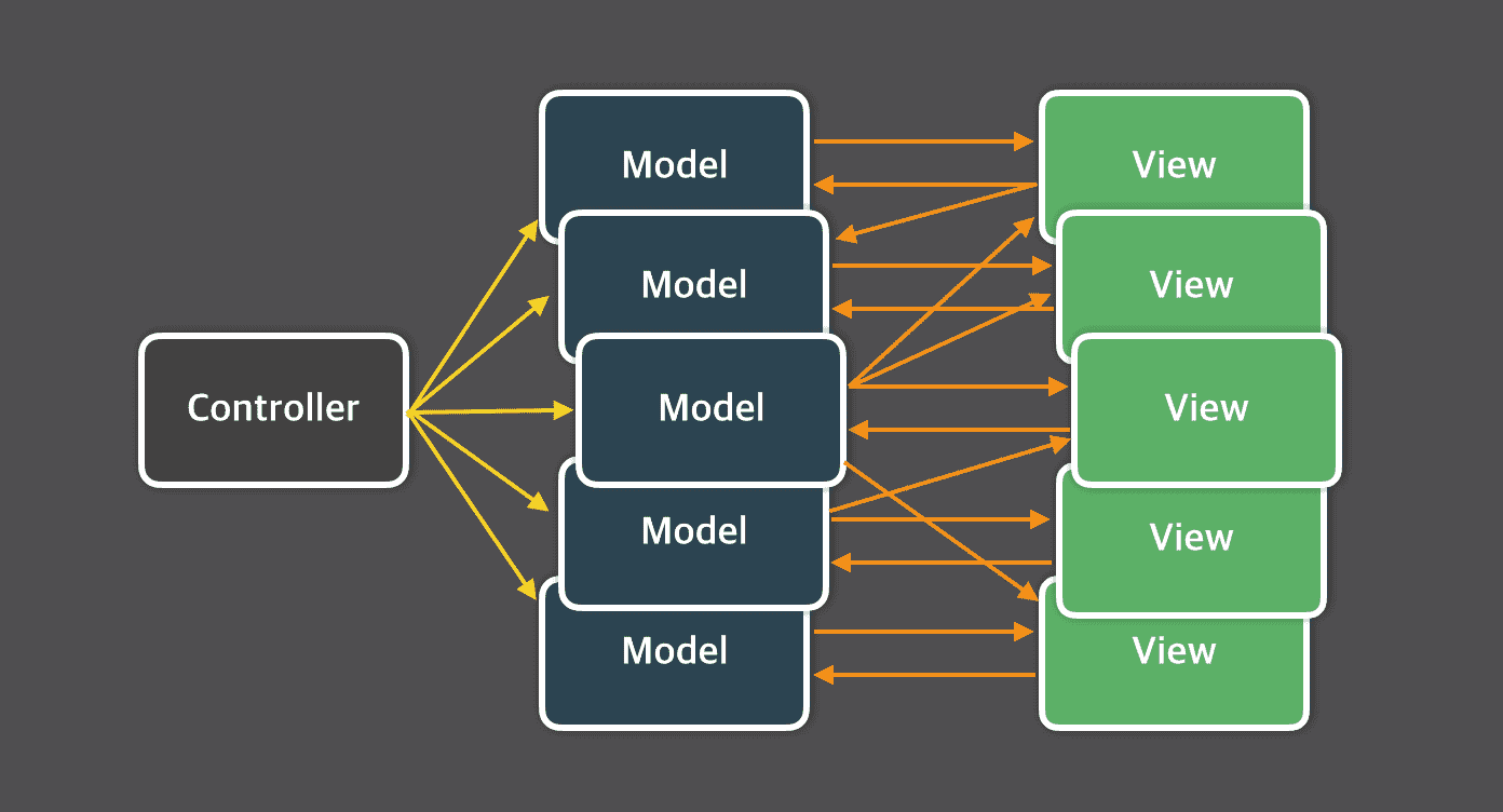 대규모 어플리케이션에서는 MVC패턴에서는 너무 복잡한 구조가 생겨나고 기능의 추가/수정이 어려워지기 시작한다.
