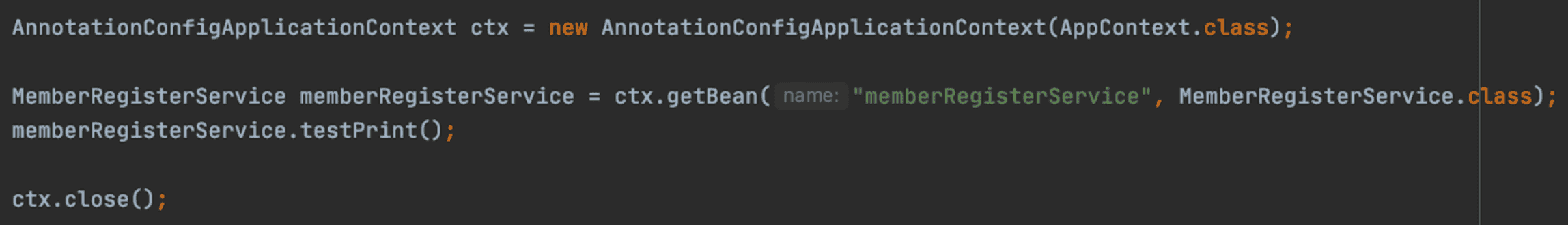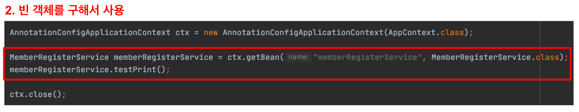 getBean을 통해 bean을 가져다 사용할 수 있습니다.