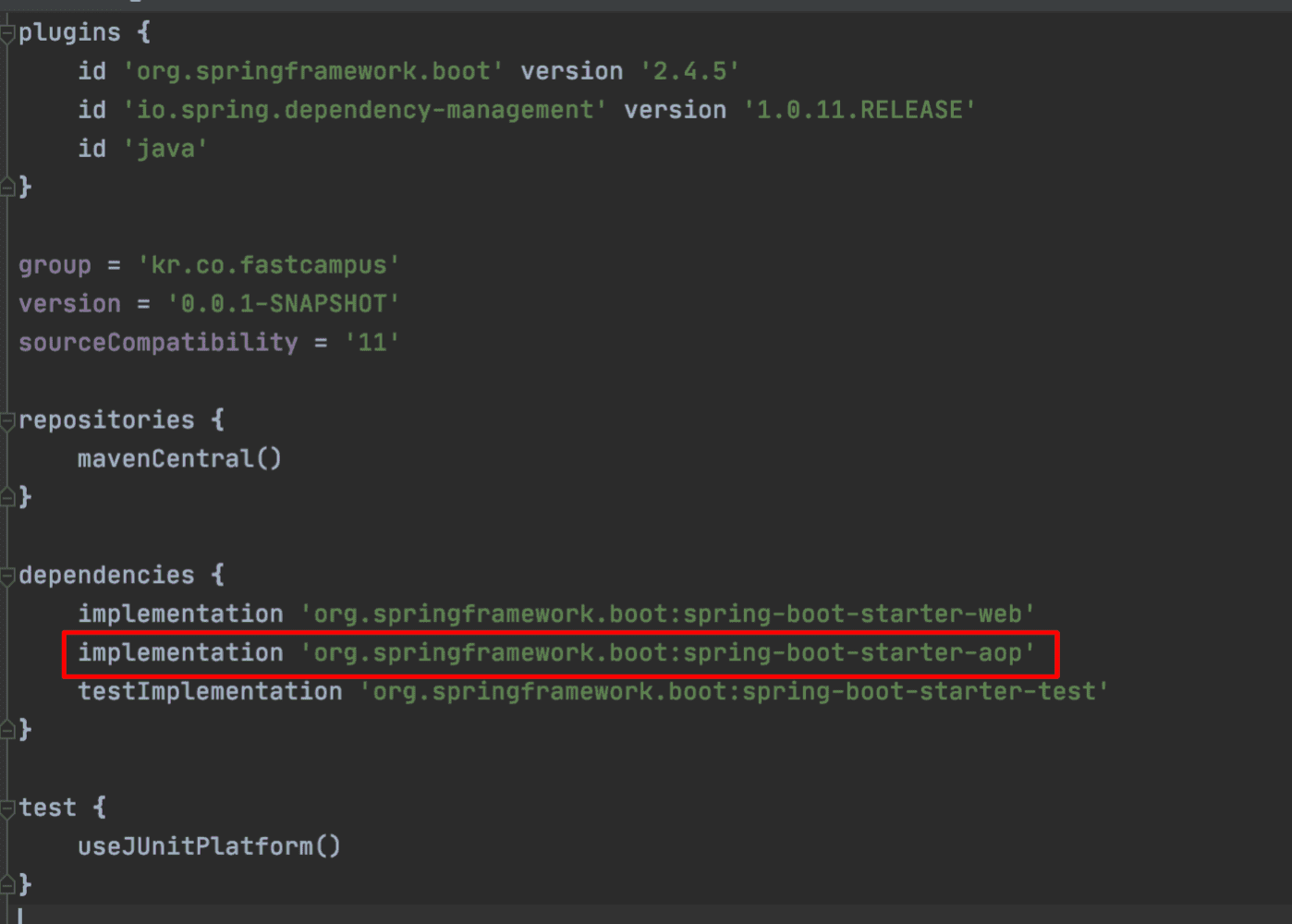 Spring AOP를 구현하기 위해 dependency를 추가합니니다.