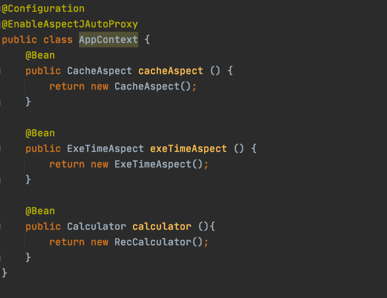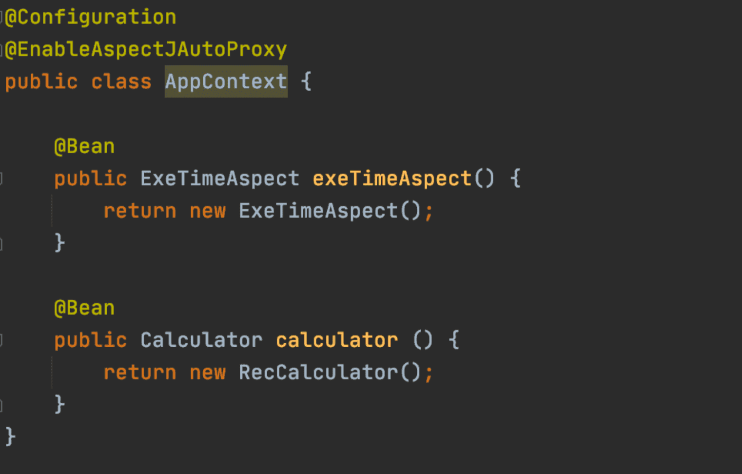 설정클래스로 가서 ExeTimeAspect를 리턴하는 Bean을 등록해줍니다.