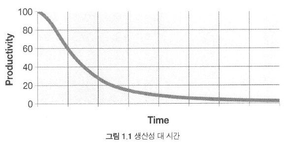 하지만 어떠한 프로그램을 개발할 때 개발자 수가 많아진다고 해서 속도 즉 생산성이 빨라지는 것이 아니다.