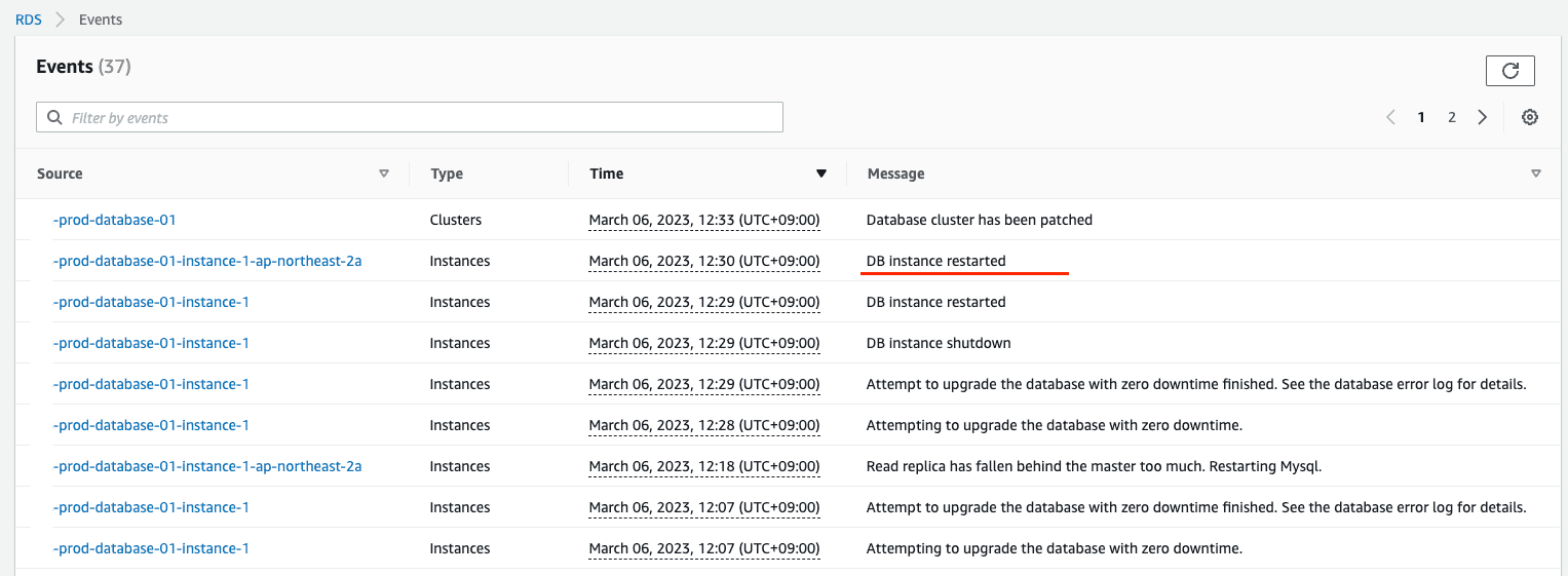 해결방법으로는 RDS가 업데이트되어 재부팅되었을 때 서버로 특정 이벤트를 전달해서 connection을 다시 맺어줄 수 있을것이다.