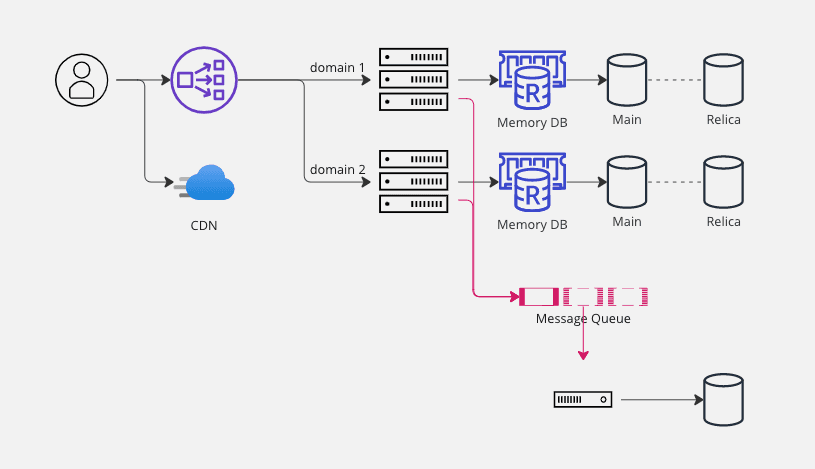 이를 해결하기 위해 WAS 와 Database 사이에 Memory DB를 둘 수 있다. 예를 들면 Redis가 있다.
