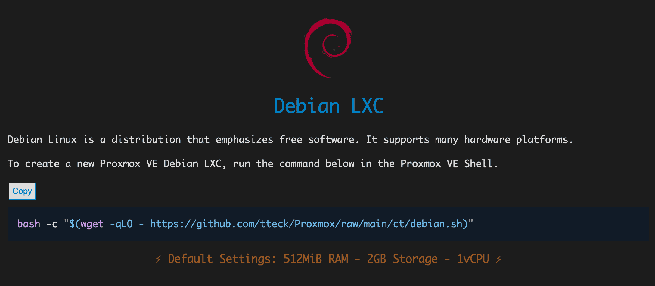 bash -c "$(wget -qLO - https://github.com/tteck/Proxmox/raw/main/ct/debian.sh)"LXC CT 만들기