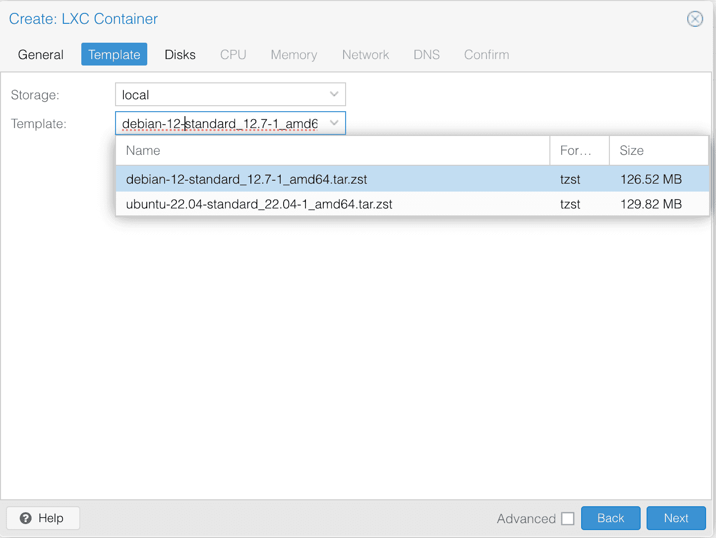Debian LXC 이미지 추가