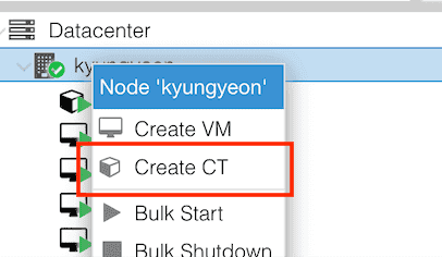 1. Create CT 선택
