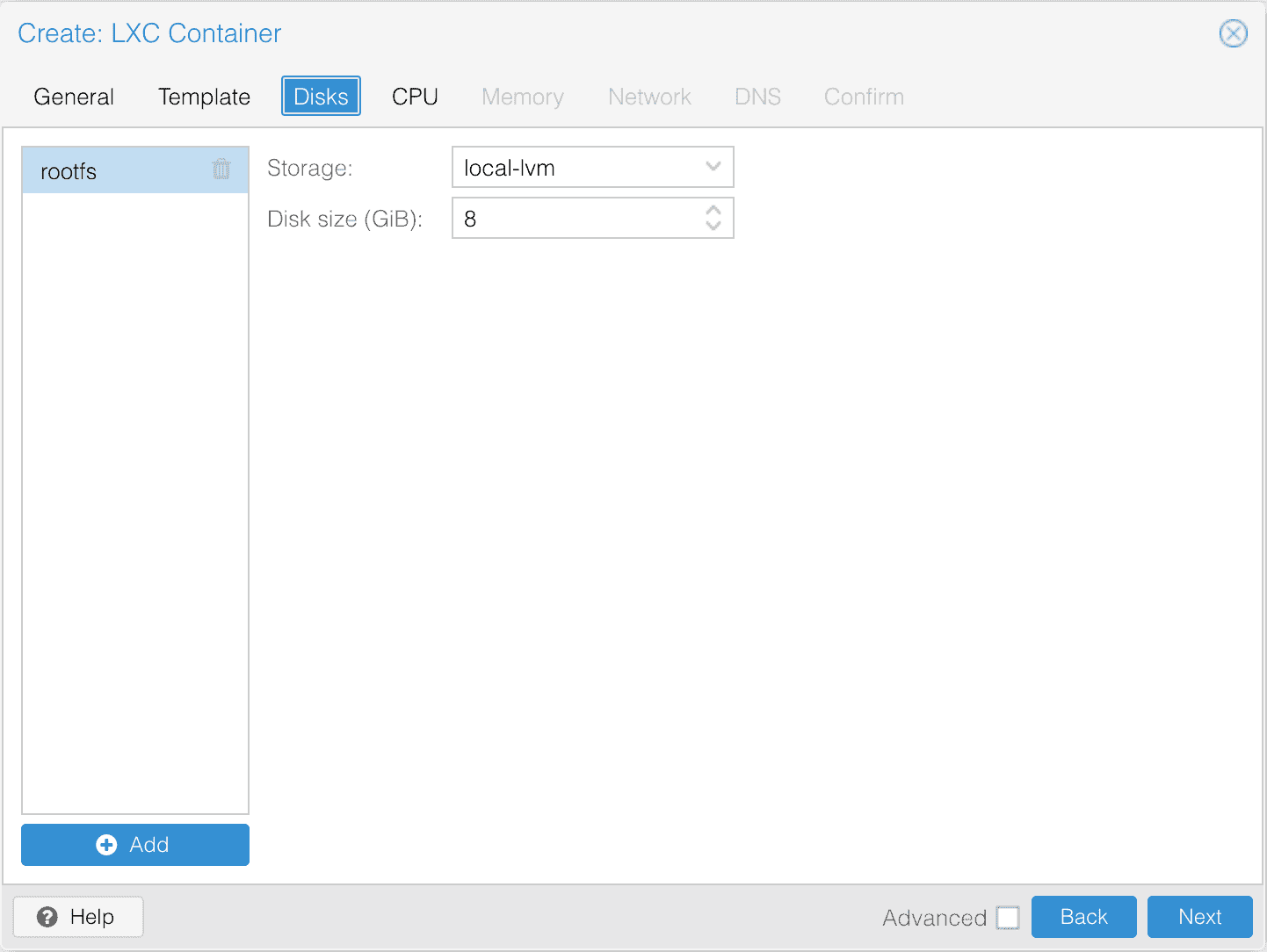 다음 명령어를 통해 LXC 를 간단하게 추가할 수 있다.